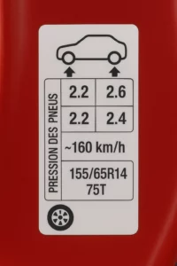 L’autocollant situé à l’intérieur de la portière côté conducteur ou parfois derrière la trappe à carburant,
